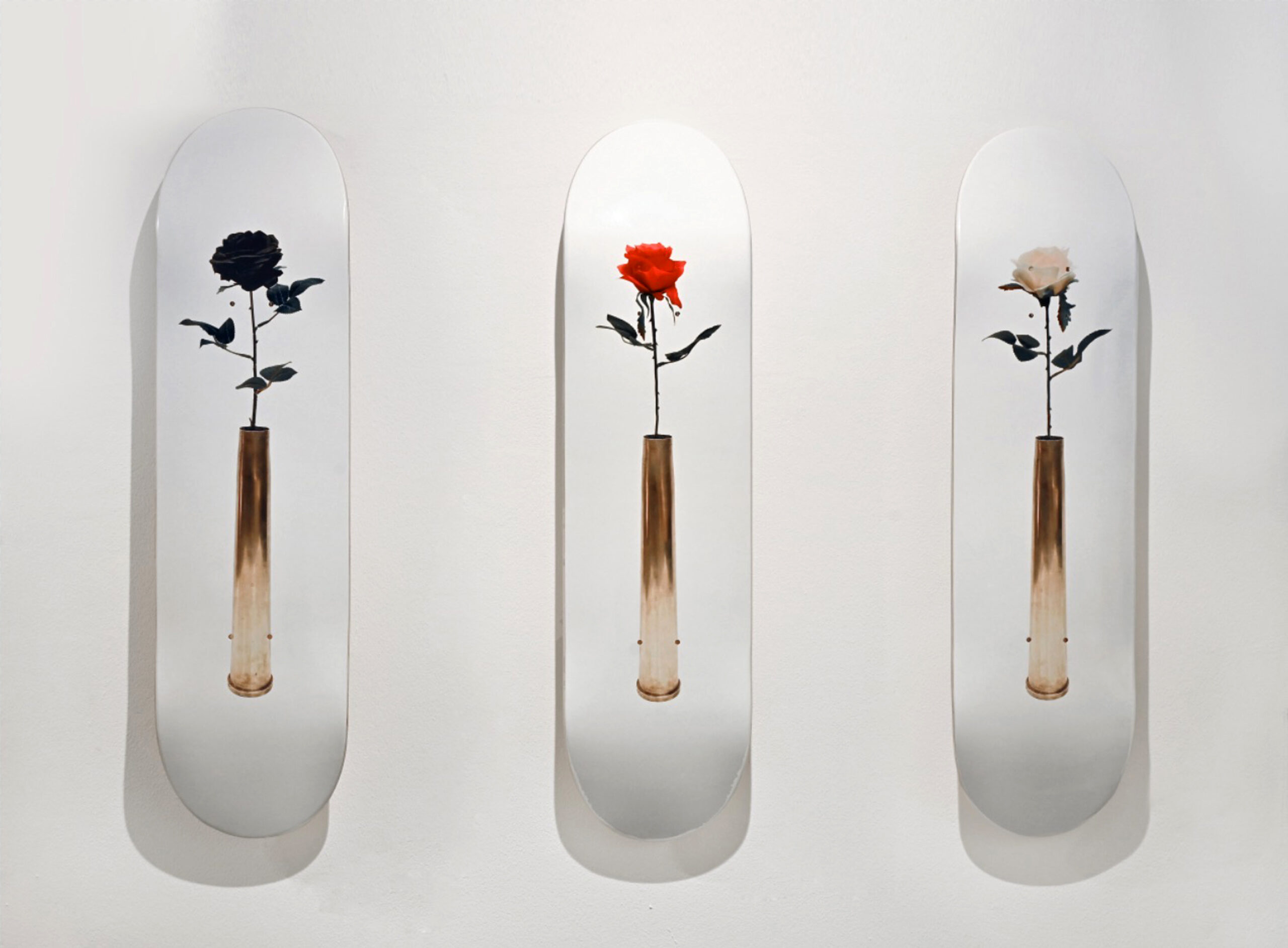 Rosebud, Hitzetransfer auf Holz, 3/3, 84 x 22 cm, 2024
